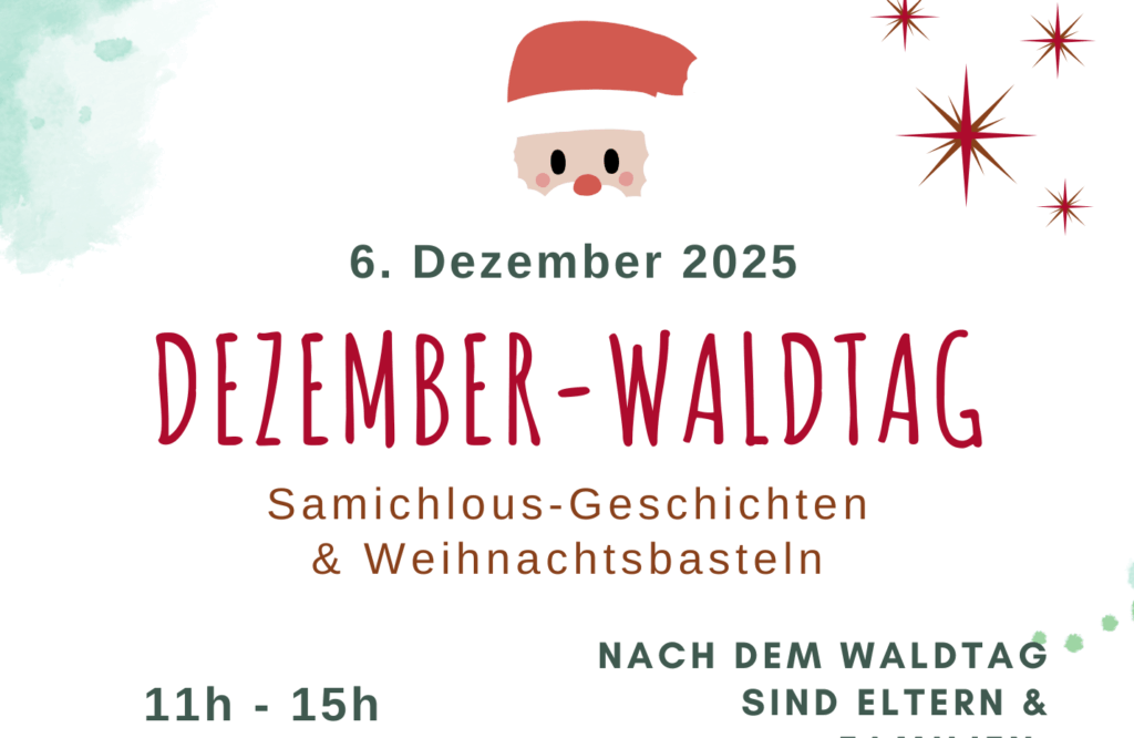 Am 6. Dezember lauschen wir spannenden Samichlaus-Geschichten und basteln etwas für Weihnachten. Im Anschluss laden wir Eltern, Familien und Freunde zu einem gemütlichen Chlousä-z’Vieri ein. Und wer weiss, vielleicht finden wir ja noch die eine oder andere Chlousä-Spur im Wald?